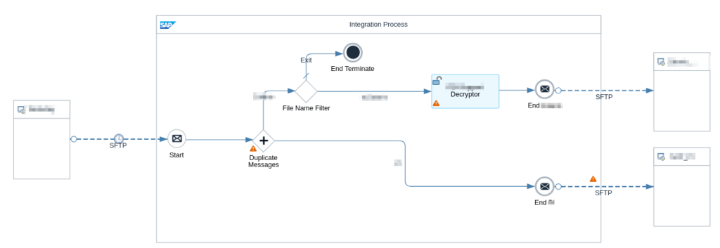 Consider a file based integration, where the middleware has to pick up a file on an sFTP server and distribute the file to different sFTP servers, based on the file name. In our demo scenario here, we have